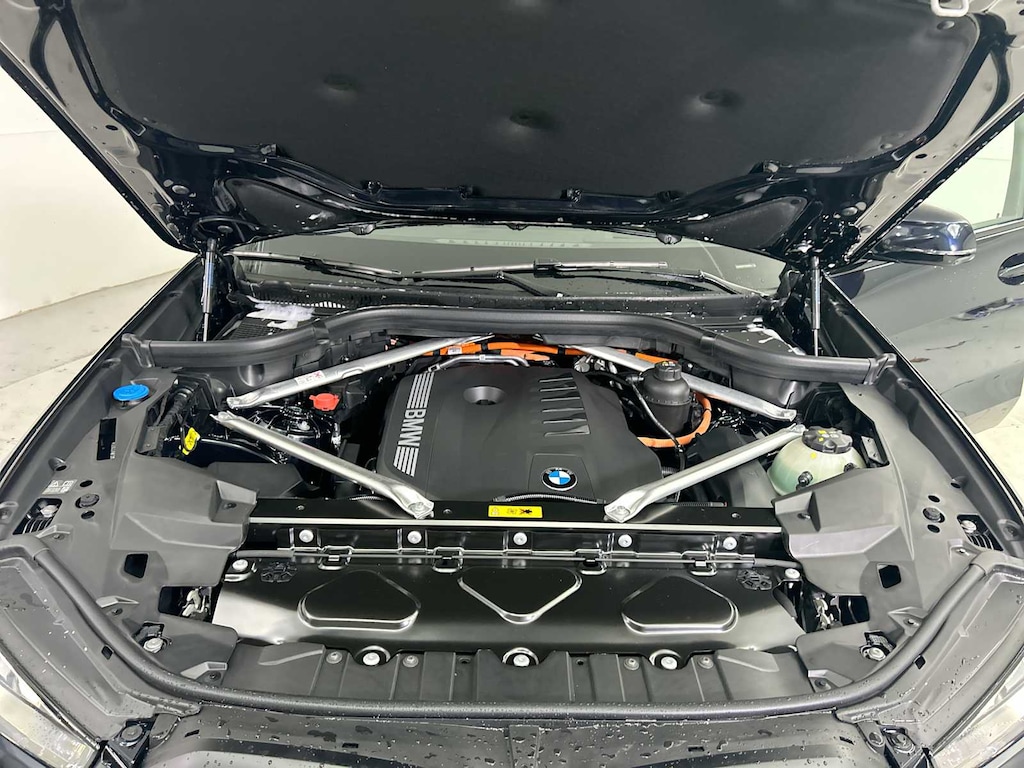 M SPORT PACKAGE Wheels: 20 x 9 M Star-Spoke Bi-Color, Style 740M, Shadowline Exterior Trim, M Steering Wheel, M Sport Package (337), Without Lines Designation Outside, High-Gloss Shadowline Roof Rails, Aerodynamic Kit, CLIMATE COMFORT PACKAGE 4-Zone Automatic Climate Control, Front Ventilated Seats, Multi-Contour Seats, Front & Rear Heated Seats, Heated Front Seats, Armrests & Steering Wheel, PREMIUM PACKAGE Live Cockpit Pro, HUD and video AR, harman/kardon® Surround Sound System, PARKING ASSISTANCE PACKAGE automatic park assistant, backup assistant and trailer assistant, Parking Assistant Professional, Active Park Distance Control, Parking View w/3D View (Surround View), TRAILER HITCH. BMW xDrive50e with Carbon Black Metallic exterior and Black interior features a Straight 6 Cylinder Engine with 483 HP at 5000 RPM*.
